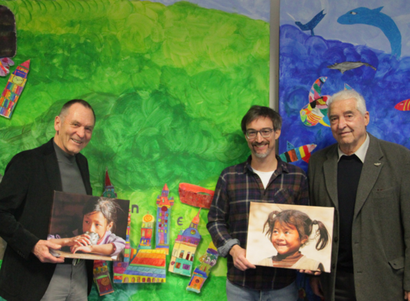 Die Vorstandsmitglieder Ottmar Flach (links) und Wolfgang Bäder (rechts im Bild) mit Stefan Bauer (mitte) von der Nepal Initiative Schongau e.V.